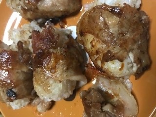 戴いた国産豚肉小間切れで、娘が肉巻きおにぎりを作っていました☺️