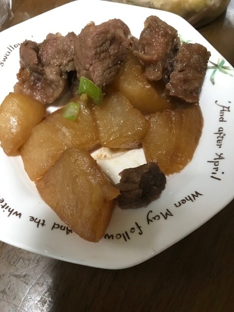 ご支援いただいた国産牛煮込み用角切り肉で、牛肉と大根の煮込みを作りました♪