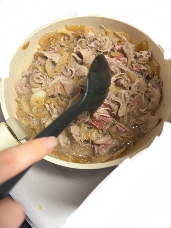 冷凍庫に残っていた最後の豚小間切れを使って、豚丼作りたい💪👩🏻🍳✨と言い出した長女🫢🫢🫢