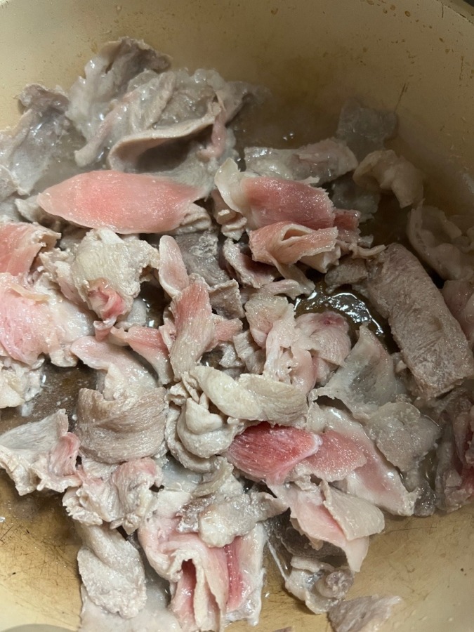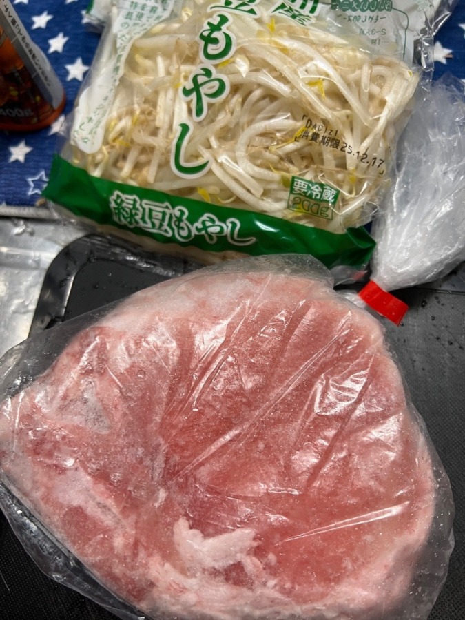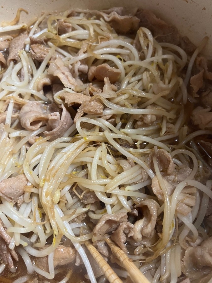 お肉1袋の半分をカットしていれ、もやしをたしましたが…😨😨😨💦